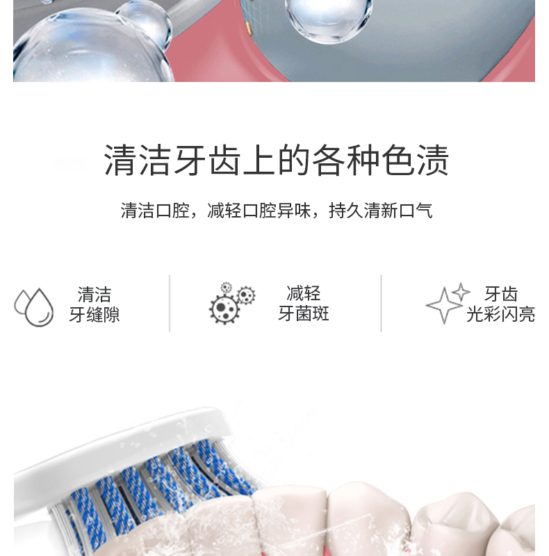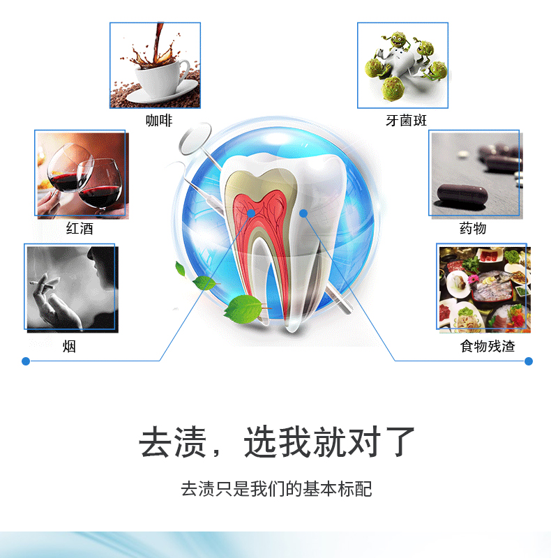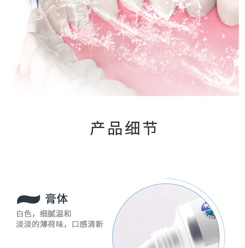 雙重潔齒微粒,減輕牙漬,維護牙齒和牙周組織健康,有效減少牙菌斑,調(diào)節(jié)口腔酸堿平衡,潔白牙齒,持久清新口氣。